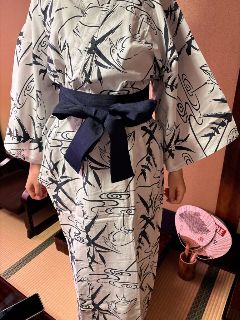 お部屋でゆっくりしたいのはやまやまですが、まずは浴衣に着替えて、温泉へ。